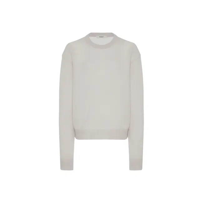 The Sheer Crew Neck Sweater in stone is knit in a delicate Alpaca blend yarn and has an extremely soft handfeel. Relaxed fitting body with rib trim at bottom hem that sits close to the body.