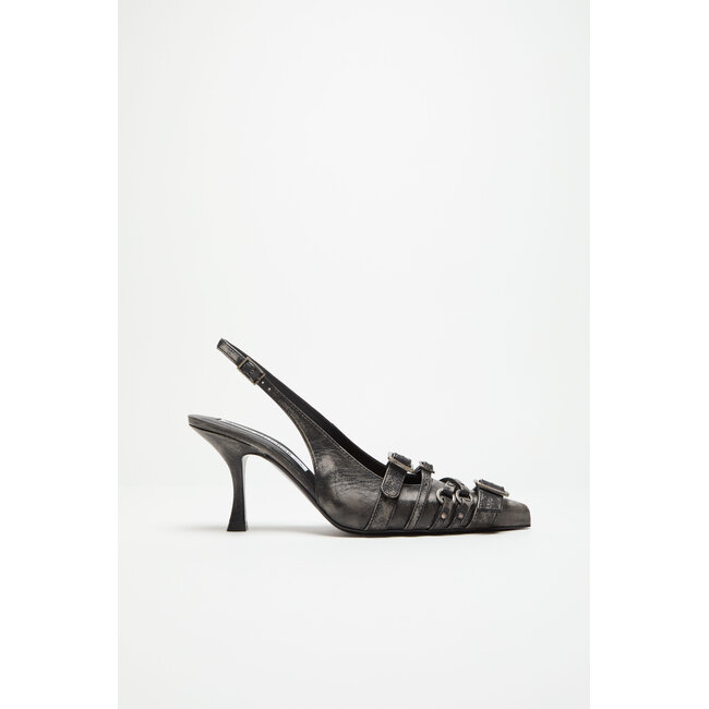 Slingbacks reimagined in a distinct tanned leather with a worked-on finish, adorned with belted details at the front.