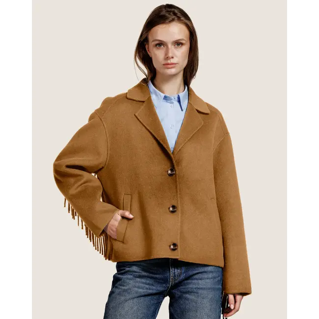 The Billie Jacket is made from premium wool. The fringe detailing adds movement and personality to every step. Perfectly tailored for a relaxed yet stylish fit, Billie is the ultimate statement piece for making every outfit special.