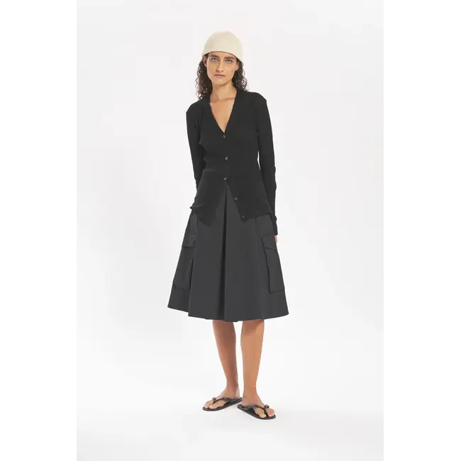 Featuring an A-line pleated cut with side and cargo pockets, this skirt is made of parachute stretch popeline for comfortable, contemporary styling. Composition: 97% Cotton, 3% Elastane