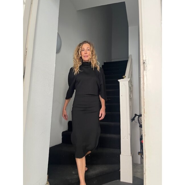 jersey pencil skirt , split and zip in the back.