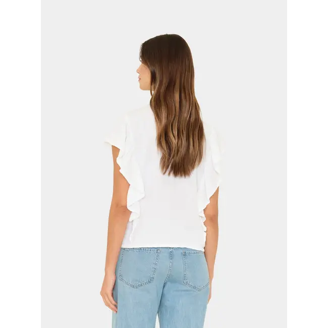 Ruffle Up. Ashlyn is made in our washed double faced cotton gauze for a soft, gently crinkled feel. This femme button-front shirt features flutter sleeves with ruffle detailing all along the front.