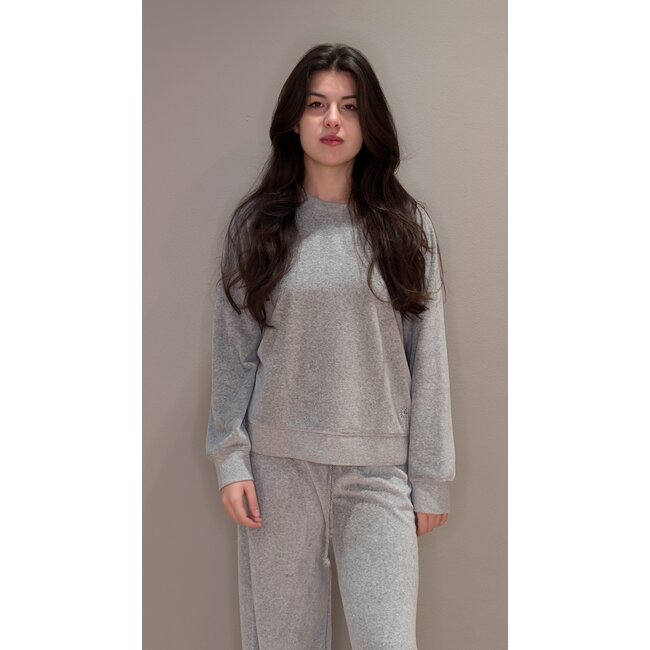 French allure meets California ease. Pierre is updated this season in our plush melange heather velour. This easy raglan sweatshirt features Lea's signature heart embroidery at the hem. Pair back with the Manon Pant for elevated comfort.